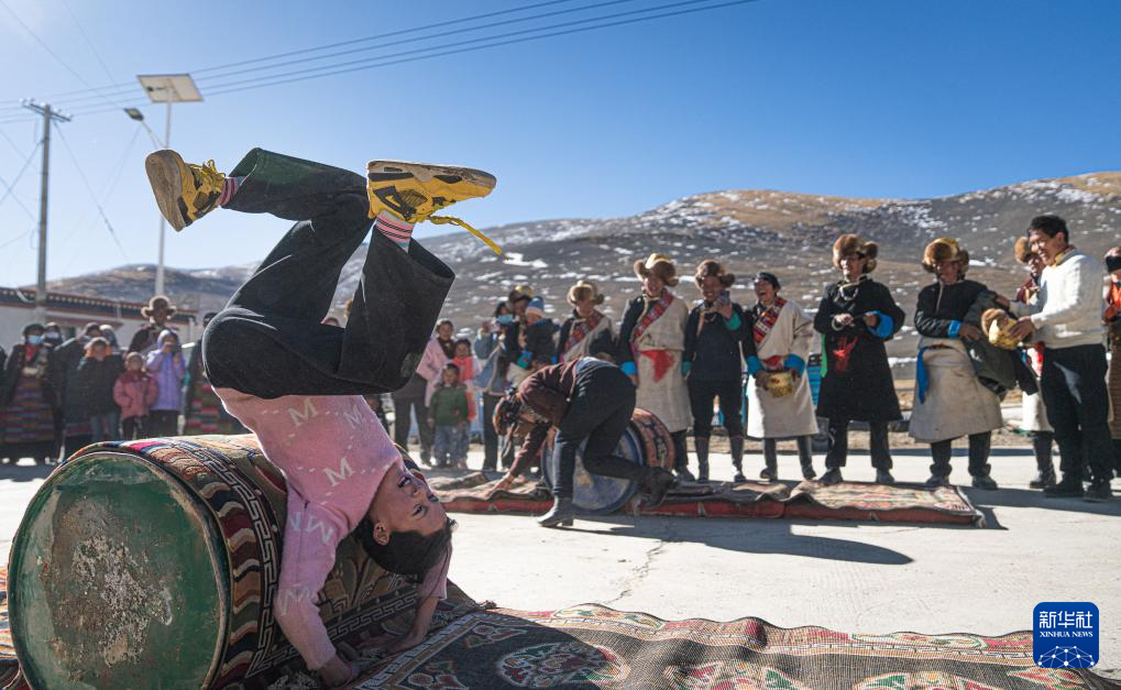 1月13日,時值西藏日喀則一帶傳統(tǒng)的農(nóng)家新年大年初二。坐落于群山間的日喀則市白朗縣東喜鄉(xiāng)思古龍村,延續(xù)傳統(tǒng)習(xí)俗,舉行擠牛奶、擲牛角等傳統(tǒng)文體比賽和翻桶接力賽等娛樂活動,以此慶祝新年。