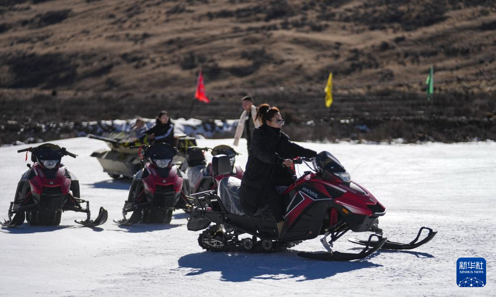 1月13日,游客在墨多滑雪場體驗(yàn)雪地摩托車嬉雪項(xiàng)目。新華社記者 晉美多吉 攝 ??