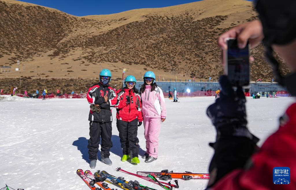 1月13日,滑雪愛好者在墨多滑雪場合影留念。新華社記者 晉美多吉 攝