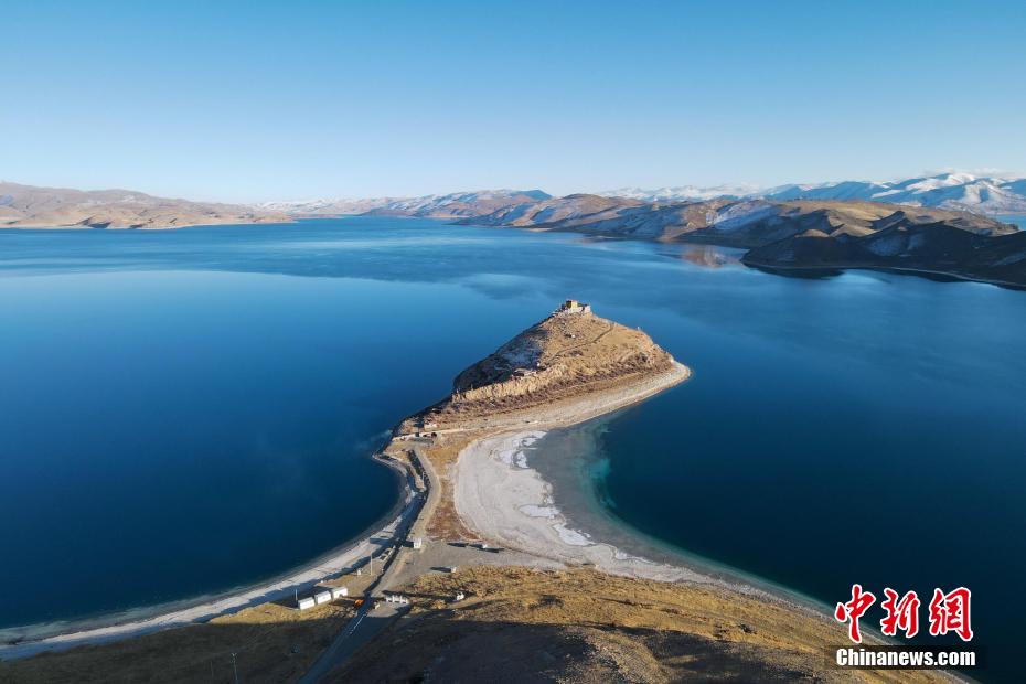 西藏自治區(qū)山南市羊卓雍錯(cuò)(簡稱羊湖)藏語意為“碧玉湖”,湖面海拔4441米,與納木錯(cuò)、瑪旁雍錯(cuò)并稱西藏三大“圣湖”。近日,中新網(wǎng)記者自駕羊卓雍錯(cuò)看到,周邊部分山體被積雪覆蓋,湖水更顯深藍(lán),航拍視角下像巨大的藍(lán)寶石鑲嵌在高原大地,風(fēng)光壯麗。在羊卓雍錯(cuò)湖畔,記者還偶遇藏原羚、赤狐等野生動(dòng)物,盡顯高原生態(tài)之美。圖為西藏羊卓雍錯(cuò)日托寺風(fēng)光。江飛波 攝