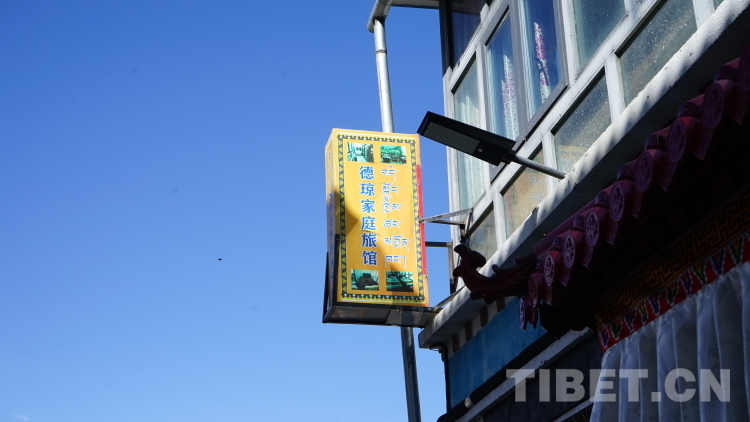 二十世紀(jì)八十年代前,整個(gè)洛扎縣的機(jī)動車普及率很低,普通百姓出門只能乘坐馬車,從拉康鎮(zhèn)到洛扎縣縣城需要三天時(shí)間。所以在那時(shí)候,鎮(zhèn)子里的人很少去縣城,一些老人甚至一輩子也沒走出過拉康。2019年,拉康鎮(zhèn)的盤山公路全線通車,極大地改善了當(dāng)?shù)嘏c外界的交流交往,拉康鎮(zhèn)客流量逐步提升,2022年景區(qū)年旅游人次達(dá)38000余人次,政府在發(fā)展旅游業(yè)的同時(shí),投入100余萬元帶動居民開辦家庭旅館——村民將自家空余的房間對外短租,形成民俗式的家庭旅店,德瓊家庭旅館就是這樣的一間旅館。