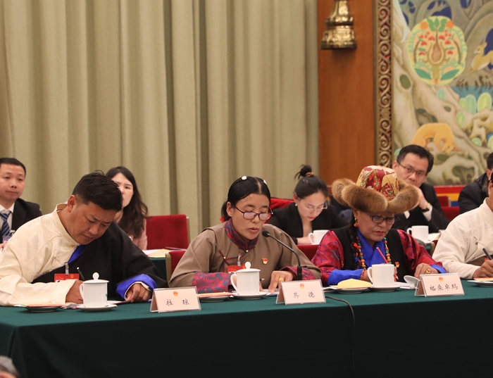圖為其德在十四屆全國人大二次會議西藏代表團(tuán)開放團(tuán)組會議上發(fā)言攝影:桑吉