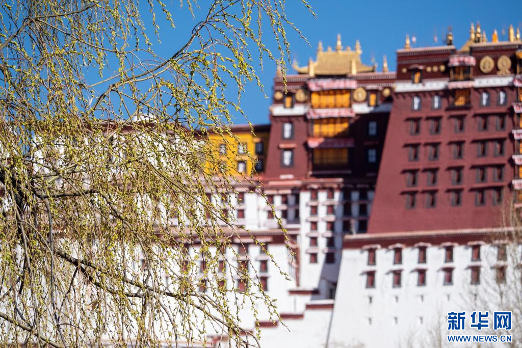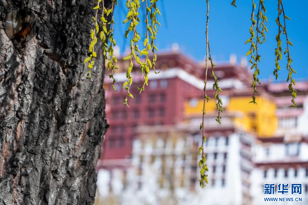 3月15日,吐露新芽的柳枝掩映著布達(dá)拉宮。新華網(wǎng) 旦增努布 攝