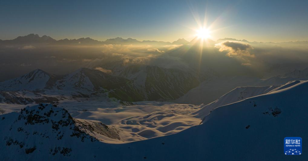 這是喜馬拉雅山脈的日出(4月17日攝,無人機(jī)照片)。新華社記者 洛卓嘉措 攝