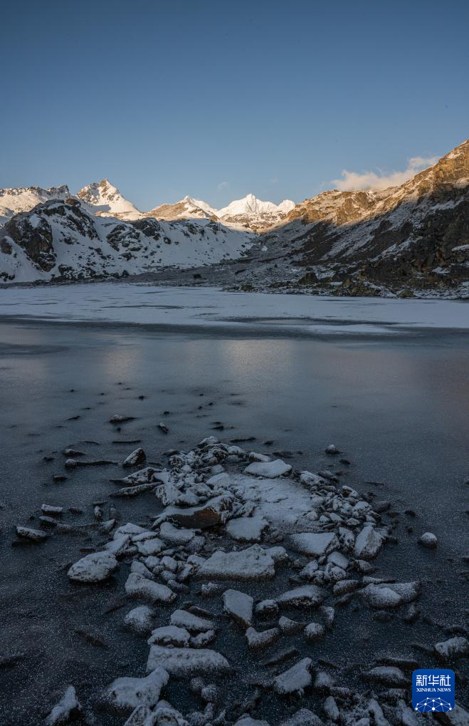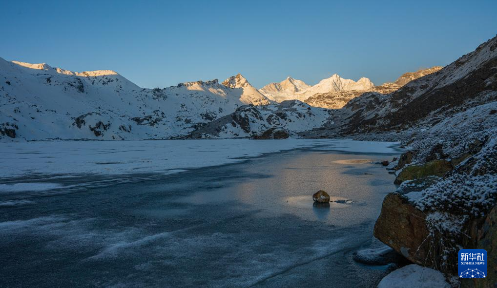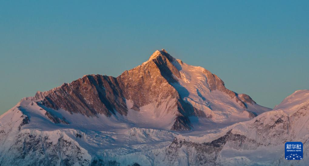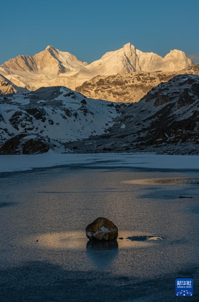 這是在嘎瑪溝拍攝的“日照金山”景象(4月17日攝)。新華社記者 丁增尼達(dá) 攝