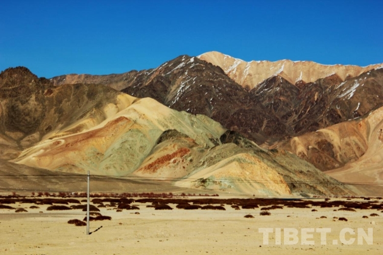 阿里地區(qū)地形復(fù)雜多樣,大致分為高原湖盆區(qū)、高山寬谷區(qū)、高山峽谷區(qū)三種形態(tài)。高海拔、高寒、日照時間長且輻射強等自然條件,使得阿里地區(qū)不僅擁有雄渾壯麗的高原風(fēng)光,而且隨海拔、光照、季節(jié)、山體巖層所含礦物質(zhì)種類等因素呈現(xiàn)出色彩繽紛的變化。圖為阿里地區(qū)噶爾縣一處多彩的山體 攝影:劉莉