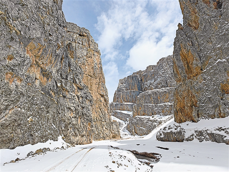 經(jīng)雜榮嘎峽谷,兩山相崟十余里,一峽一水一條路一線天;翻瑪欽拉山口,單堆碎石覆碎雪,古道千里,行人了無(wú)痕;過(guò)巴青本塔鄉(xiāng),折向東楞木拉,過(guò)山進(jìn)溝又見(jiàn)奇峰巉巖、怪石嶙峋。