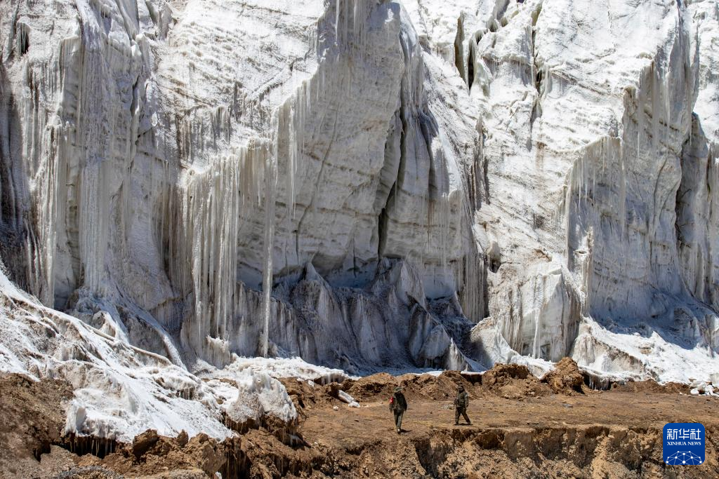 ??野生動物專業(yè)管護隊員在無人區(qū)深處的藏色崗日冰川巡查(5月11日攝)。新華社記者 姜帆 攝