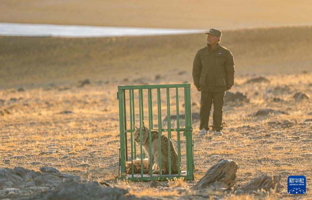 ??野生動物專業(yè)管護隊員準備將一頭猞猁放歸自然(5月12日攝)。新華社記者 丁增尼達 攝
