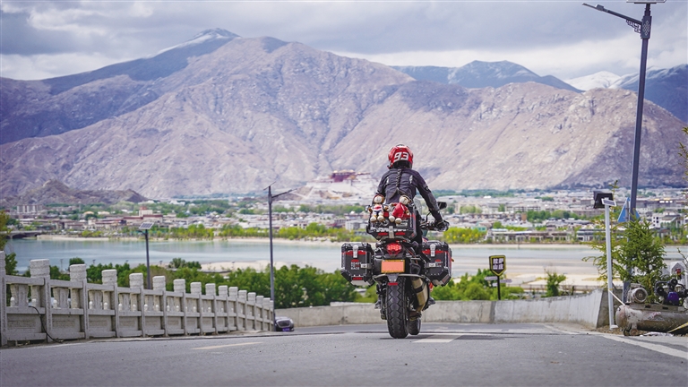 在現(xiàn)場(chǎng),有的游客走在車(chē)前,用拖車(chē)?yán)K假裝拽著車(chē)子往坡上走;有的游客探出車(chē)子的天窗揮手;有的摩友駕駛自己的愛(ài)車(chē)擺出炫酷的姿勢(shì)……大家獨(dú)特的拍攝pose,只為留下自己與這座城市美好鏈接的重要時(shí)刻。“我們來(lái)自遼寧省大連市,這是我第一次來(lái)拉薩。這里山美、水美,人也熱情淳樸?!眲倓偱臄z完的游客牛小雷說(shuō),“我是通過(guò)網(wǎng)絡(luò)平臺(tái)的推送了解到這個(gè)S彎的,今天來(lái)感受一下,感覺(jué)非常好!”