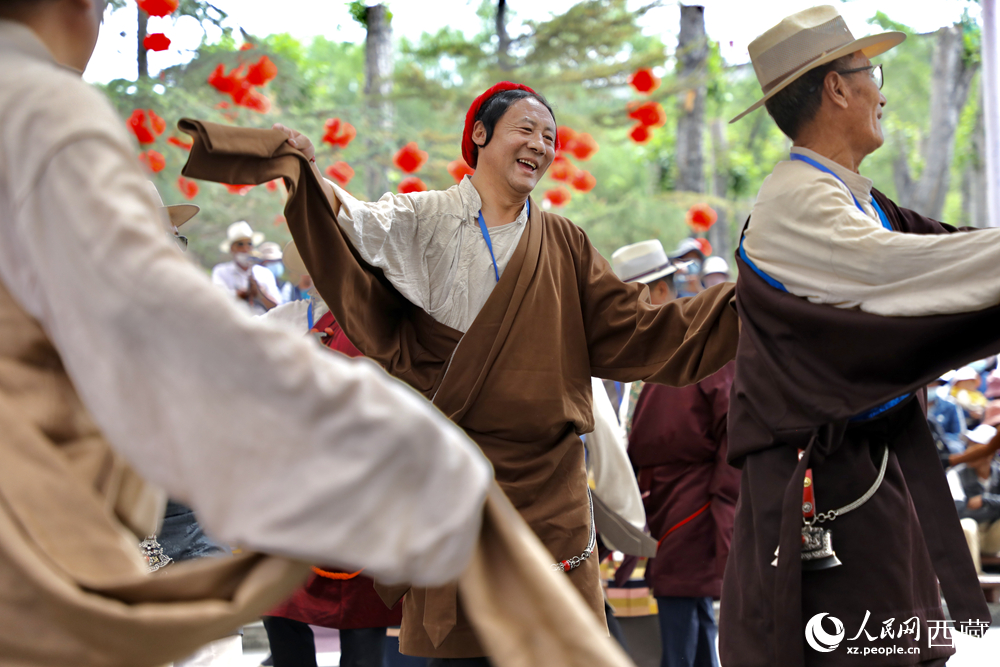 拉薩布達拉宮腳下的宗角祿康公園民俗活動區(qū)里,市民們在這里載歌載舞。人民網(wǎng)記者 次仁羅布攝