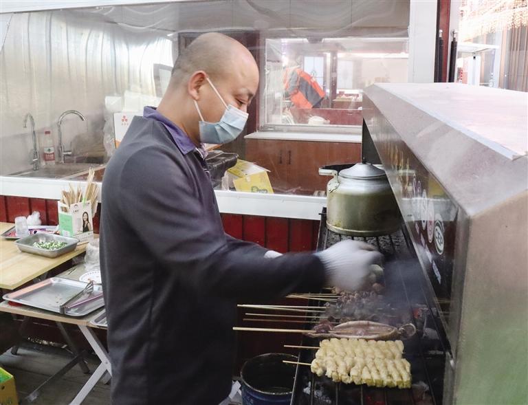炒粉伴著滋啦作響的油爆聲在鍋中“跳躍”,燒烤師傅撒下的孜然和辣椒裹滿肉粒……一道道美食在吃貨們期盼的目光中上桌,來一杯冰鎮(zhèn)汽水或冰啤酒,盛宴就此開始……