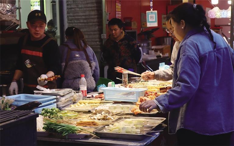 “在明亮寬敞的商場(chǎng)里逛得有些審美疲勞,但又實(shí)在留戀夏夜的舒適,所以才來到商場(chǎng)外的金街上,在大大小小的宵夜攤前一邊品嘗著各種美食,一邊談天說笑,感受獨(dú)屬于鬧市的人間煙火?!笔忻襁_(dá)珍開心地說?!?/p>