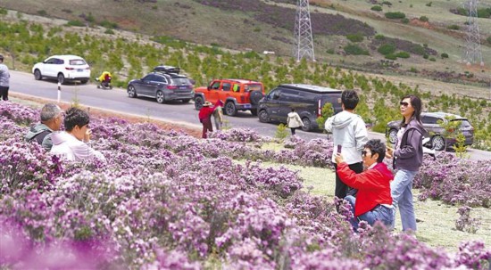 圖為游客在杜鵑花海中玩賞。記者 萬慧 攝