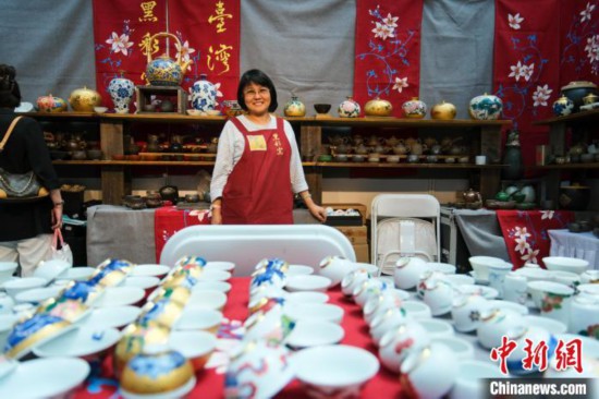 8月7日,拉薩進口商品展覽會現場,臺灣陶藝師白芃絪在自己的展位上。中新社記者 江飛波 攝