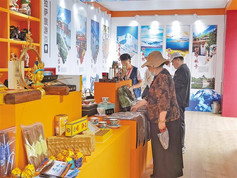 第二屆西藏文化藝術(shù)節(jié)期間,游客在參觀非遺文創(chuàng)產(chǎn)品。 記者 鄭璐 袁海霞 攝