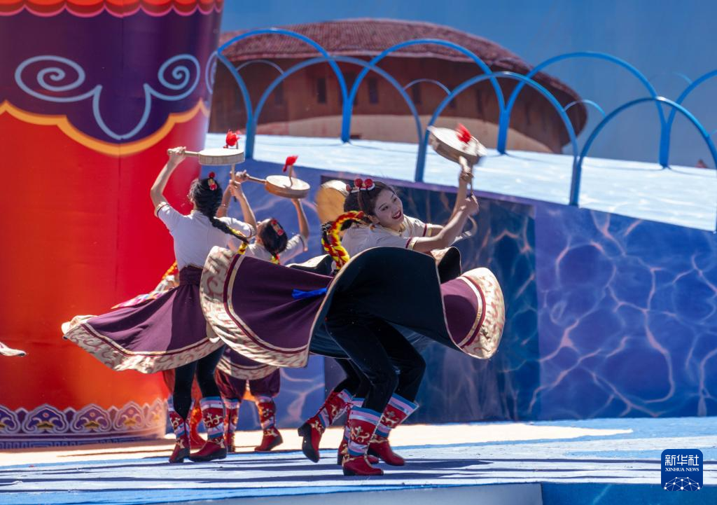 8月19日,演員在第十屆三江茶馬文化藝術(shù)節(jié)開(kāi)幕式上表演。新華社記者 旦增尼瑪曲珠 攝
