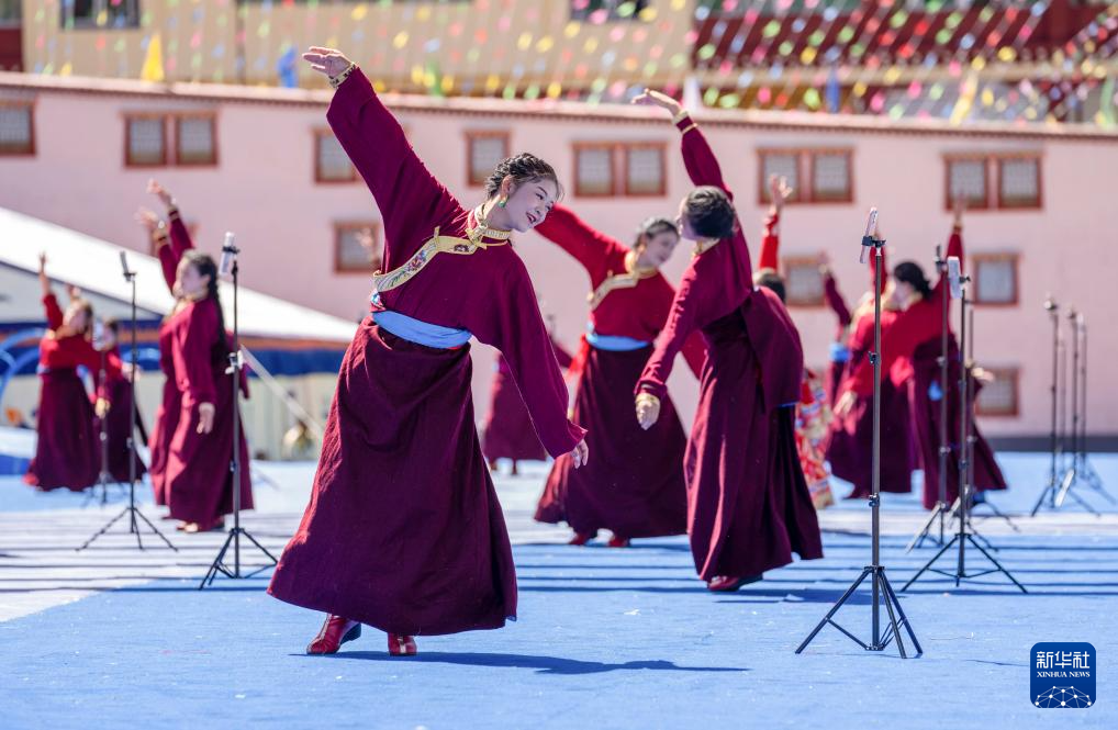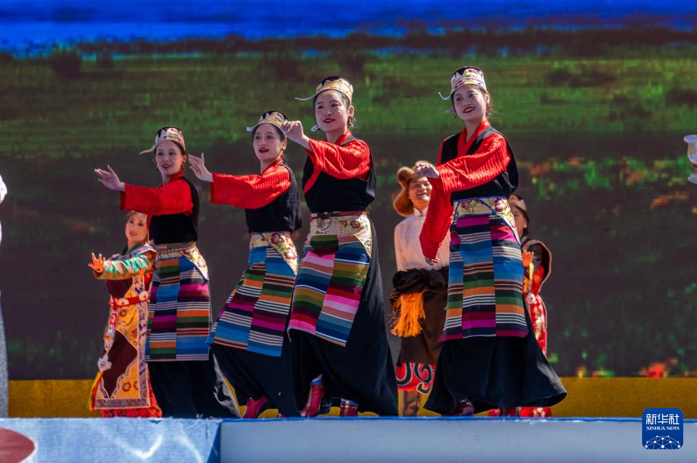 8月19日,演員在第十屆三江茶馬文化藝術(shù)節(jié)開(kāi)幕式上跳起傳統(tǒng)舞蹈。新華社記者 旦增尼瑪曲珠 攝
