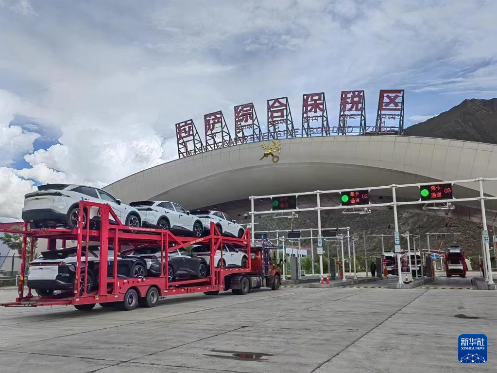 新能源汽車正被送入拉薩綜合保稅區(qū)(7月26日攝)。新華社記者劉洲鵬 攝