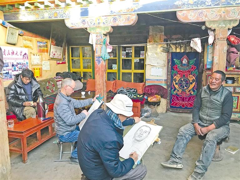 周明暉正在創(chuàng)作作品《金秋望果時(shí)》。
