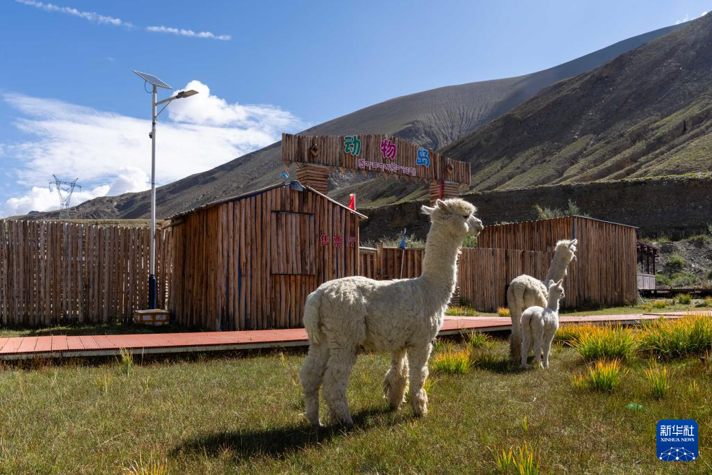這是南尼棲塘生態(tài)園里的動(dòng)物島,羊駝散養(yǎng)在門口的草地。新華社記者 旦增尼瑪曲珠 攝