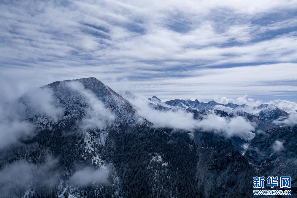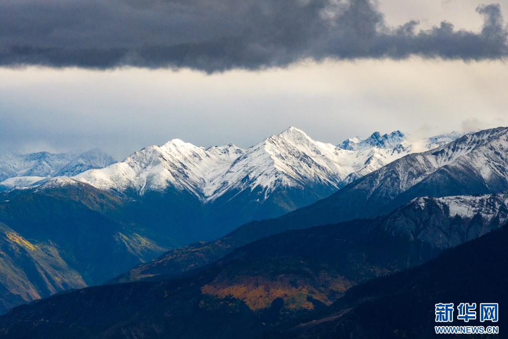 10月13日,在西藏昌都市八宿縣境內(nèi)川藏公路沿途拍攝的雪山(無人機照片)。新華網(wǎng) 旦增努布 攝