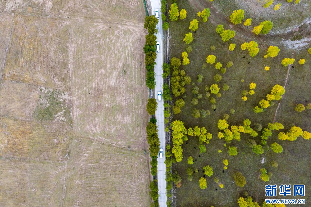 10月17日,在西藏昌都市卡若區(qū)境內(nèi)拍攝的鄉(xiāng)村道路(無人機照片)。新華網(wǎng) 旦增努布 攝