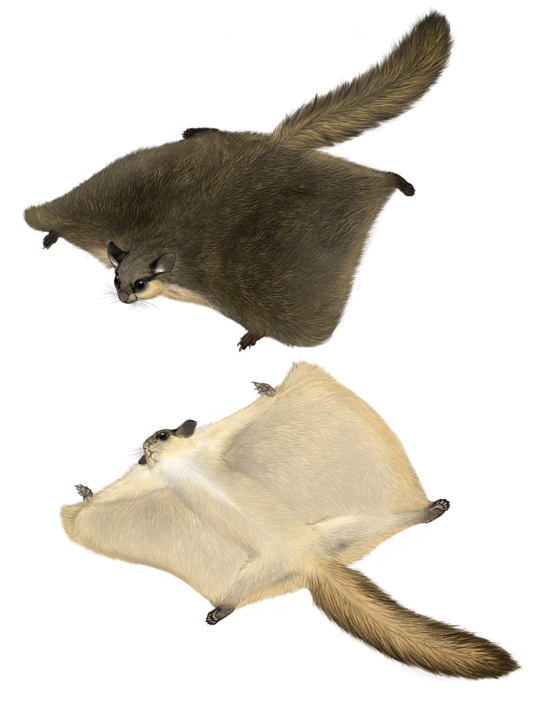 論文第一作者、中國科學(xué)院昆明動物研究所副研究員李權(quán)介紹,松鼠依據(jù)生活型分成了樹松鼠、地松鼠和飛松鼠三類。飛松鼠在漢語中被稱為鼯鼠(大體型)或飛鼠(小體型)?;涗涳@示飛松鼠起源于歐洲或北美洲,在獲得了滑翔能力后,飛松鼠與系統(tǒng)發(fā)育位置相似的其他松鼠“親戚”相比分布范圍和多樣性都得到了顯著提升,廣布于歐亞大陸和北美洲的多種森林地帶,體重從13.5克到超過2千克不等。
