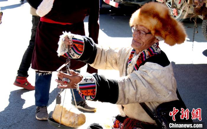 圖為申扎縣畜產品展銷會現場上,牧民正出售酥油。(資料圖)那曲市申扎縣委宣傳部供圖
