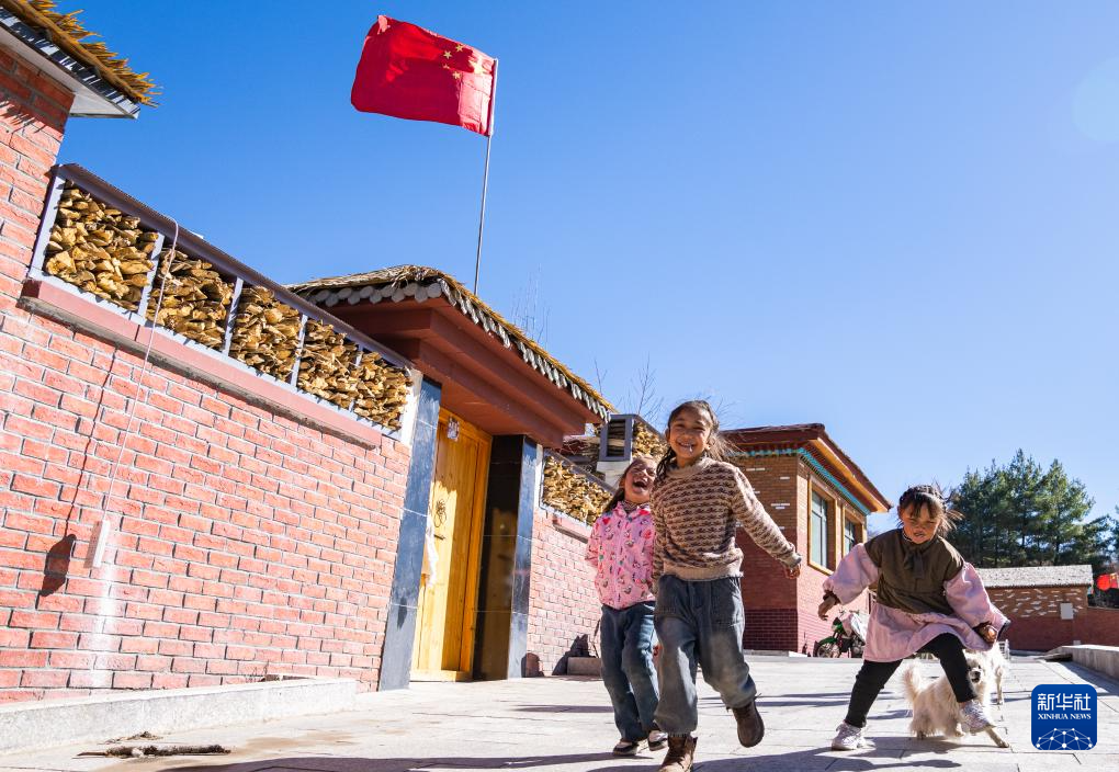 12月15日,達(dá)曼新村的孩子們在玩耍。新華社記者 丁增尼達(dá) 攝  ??
