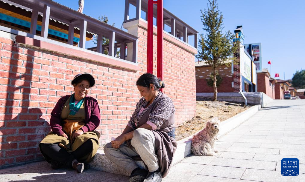 12月15日,達(dá)曼新村的婦女坐在家門口聊天。新華社記者 丁增尼達(dá) 攝  ??