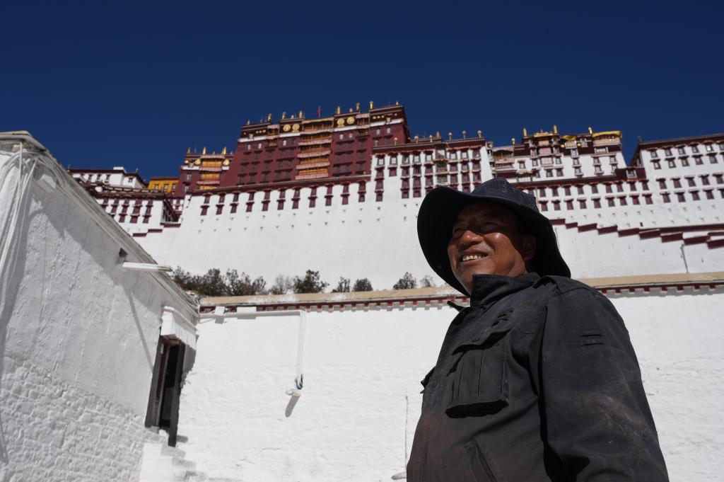 維修科工匠扎西在布達(dá)拉宮前。新華社記者 晉美多吉 攝