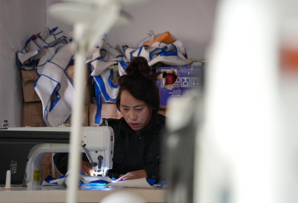裁縫組正在為布達(dá)拉宮縫制藏式門(mén)簾。新華社記者 晉美多吉 攝