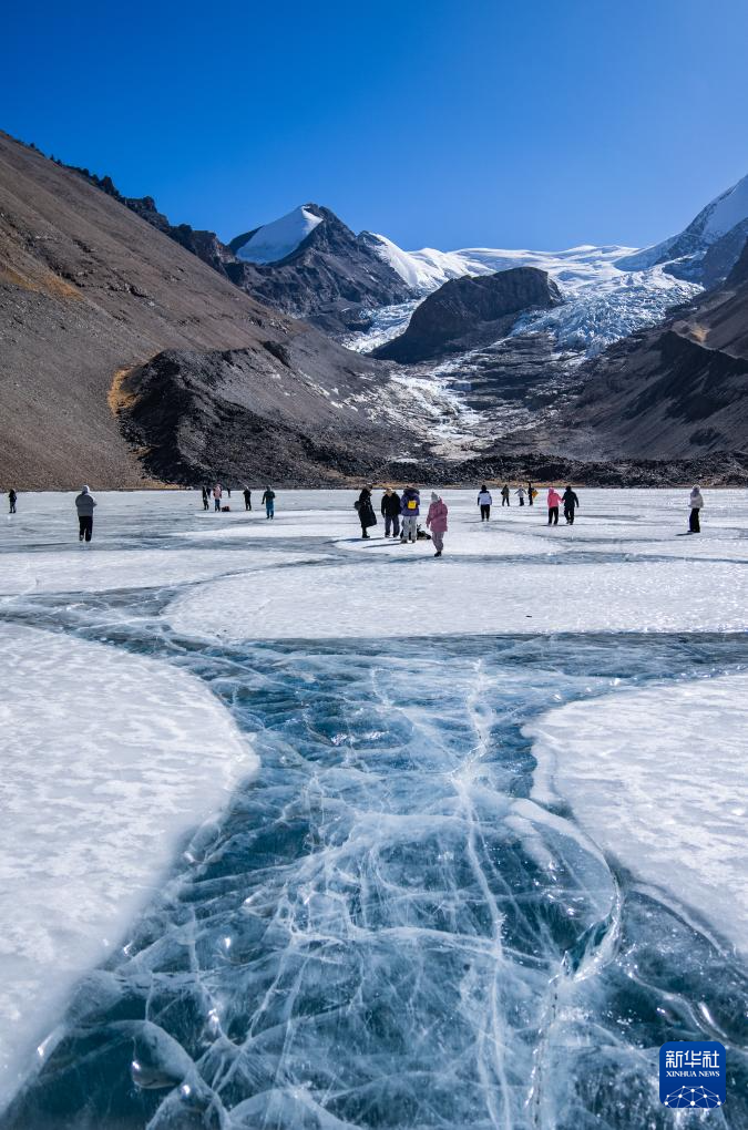 游客在恰央錯結(jié)冰的湖面上游玩(1月26日攝)。新華社記者 丁增尼達 攝 ??