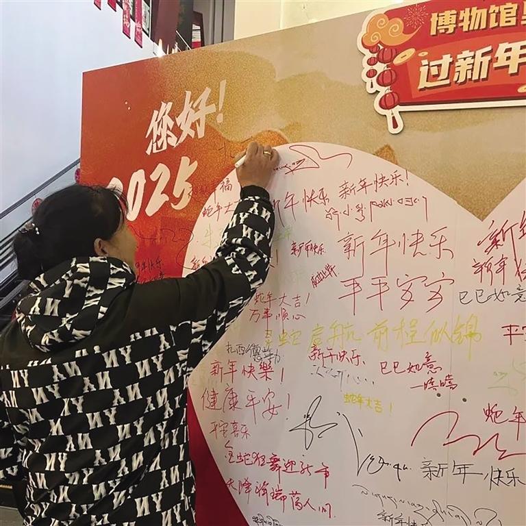 活動期間,博物館大廳的新年愿望墻備受歡迎,成為觀眾們的熱門打卡點(diǎn)。人們紛紛在心愿貼上寫下對新年的美好期許,隨后領(lǐng)取博物館精心準(zhǔn)備的節(jié)日紀(jì)念品。同時(shí),博物館推出的集卡集章活動也吸引了眾多參與者。觀眾們通過參與館內(nèi)各項(xiàng)活動收集紀(jì)念章,就有機(jī)會在年末收獲博物館準(zhǔn)備的神秘大獎(jiǎng),這一活動極大地激發(fā)了大家的參與熱情。