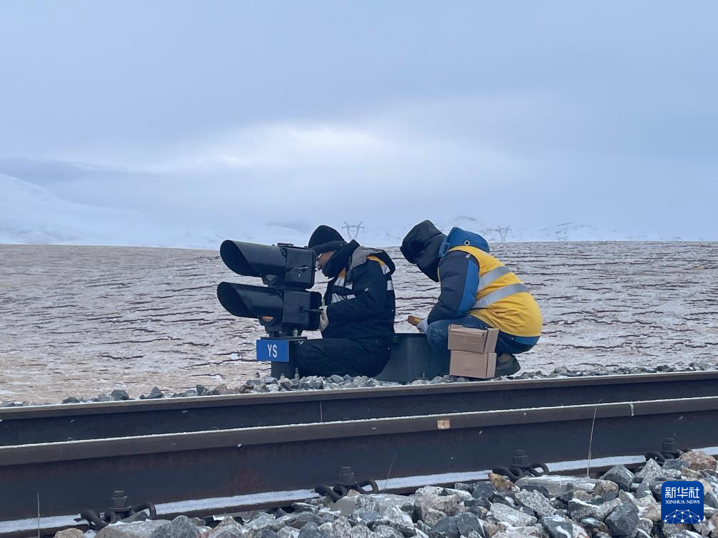 春運(yùn)期間,在海拔4700多米的青藏鐵路安多火車站,西藏那曲信號(hào)車間安多信號(hào)工區(qū)的工人們正頂風(fēng)冒雪,爭分奪秒,確保鐵路信號(hào)設(shè)備的正常運(yùn)行,為旅客的平安出行保駕護(hù)航。