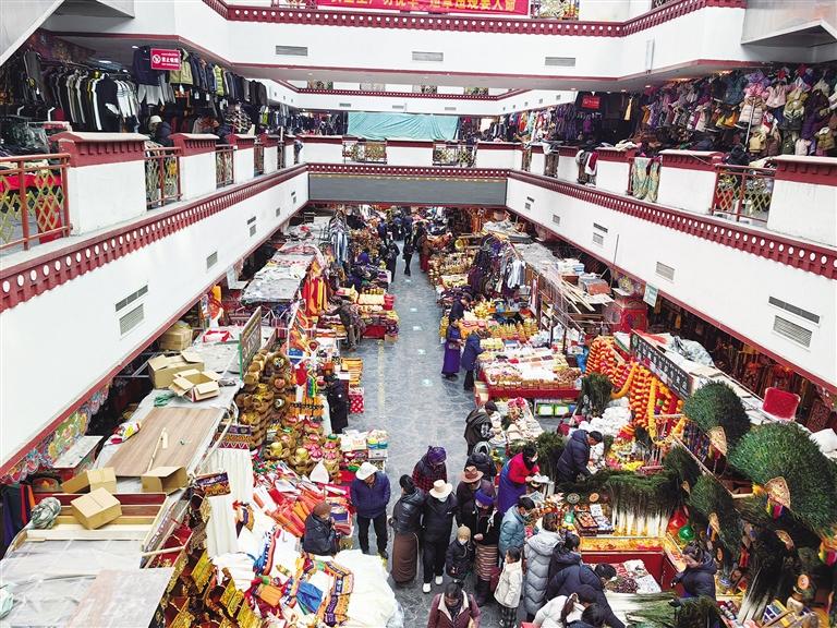“八廓商城將年貨商家集中在一起,商戶們無(wú)需再風(fēng)吹日曬,還能免費(fèi)使用攤位。”強(qiáng)巴次仁說(shuō),“為了保障商場(chǎng)內(nèi)的衛(wèi)生和安全,保潔人員定時(shí)打掃衛(wèi)生,工作人員定時(shí)巡邏,全面排查各類安全隱患,既方便了商戶,也方便了老百姓?!蔽?圖 記者 張雪芳