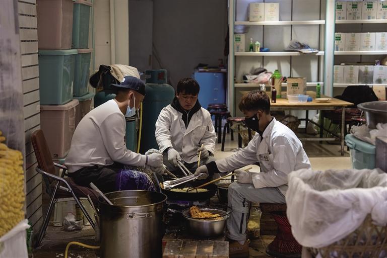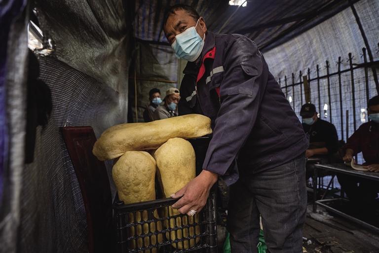 第一塊卡賽不僅炸出了好寓意,也炸出了大家的安心。索朗說:“出鍋的第一塊卡賽如果是顏色均勻靚麗且香酥的話,寓意著今天的卡賽會‘聽話’,炸出來會很好看。”索朗所說的“聽話”,其實是油溫始終控制在七成熱狀態(tài),不會炸糊也不會翻涌。