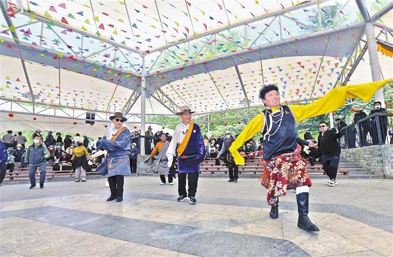 位于拉薩河畔的中華文化公園里,陽光燦爛、微風(fēng)輕拂,蜿蜒交錯的步道上,隨處可見市民休閑娛樂的身影。