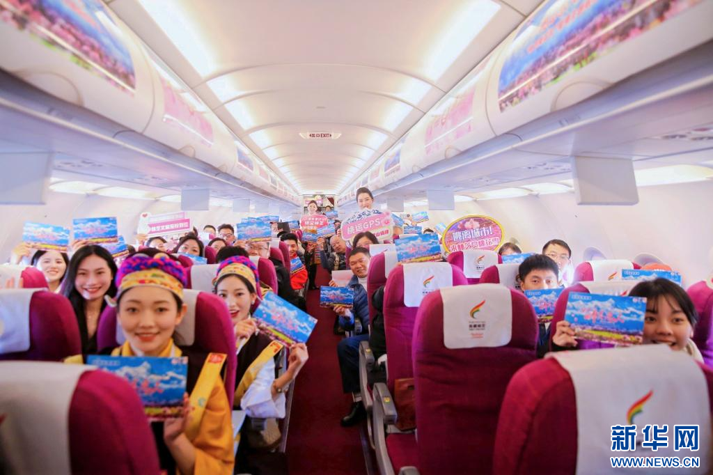 在首航旅途中,航班以“林芝桃花”為主題,載著來(lái)自全國(guó)各地的林芝“醉”美戀人、文旅達(dá)人、媒體代表及游客等100余人,開展了派發(fā)林芝來(lái)信、情侶云端告白、情歌合唱、首航蛋糕慶祝儀式等精彩互動(dòng)環(huán)節(jié),并通過(guò)桃花仙子云端文旅推介讓嘉賓和游客們對(duì)林芝滿懷憧憬。