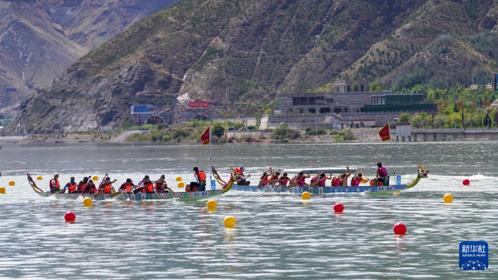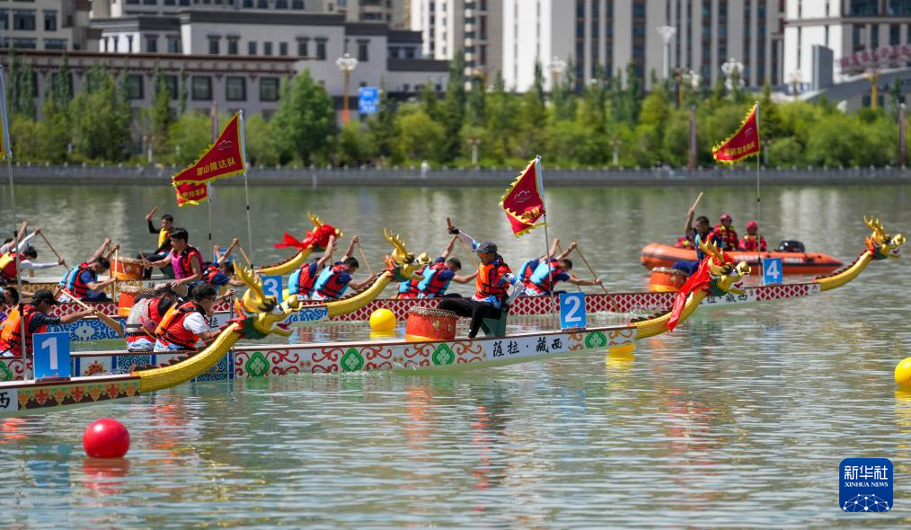 5月31日,參賽隊伍在龍舟比賽中。新華社記者 晉美多吉 攝 ??