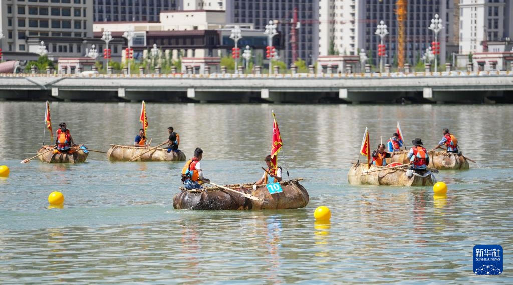 5月31日,參賽隊伍在牛皮船比賽中。新華社記者 晉美多吉 攝