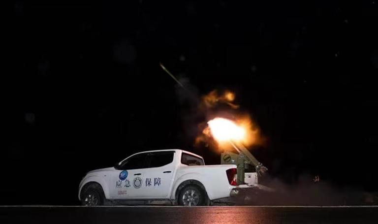 拉薩市人工影響天氣領(lǐng)導(dǎo)小組辦公室工作人員正在實施作業(yè)。 圖由拉薩市氣象局提供