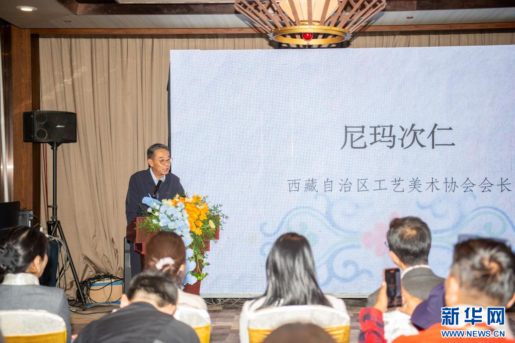 7月7日,西藏自治區(qū)工藝美術(shù)協(xié)會會長尼瑪次仁在活動現(xiàn)場交流發(fā)言。新華網(wǎng) 旦增努布 攝