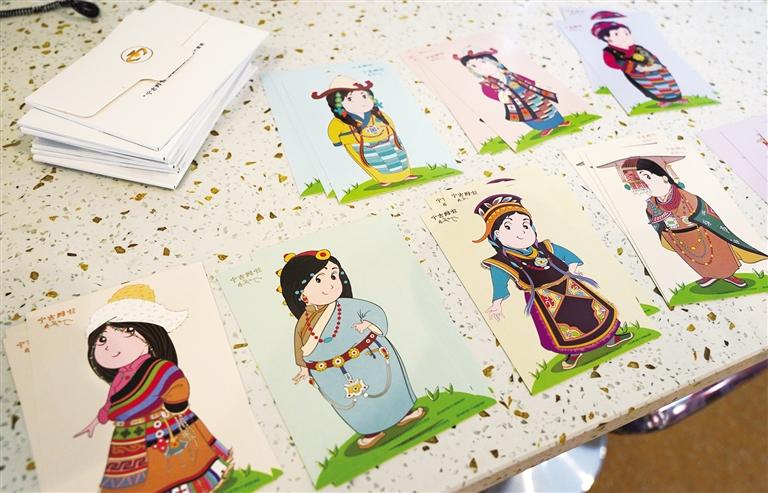 目前,藏博郵禮郵政服務(wù)點(diǎn)已向公眾免費(fèi)提供13枚主題印章的集章服務(wù)。其中,鎮(zhèn)館之寶章以昌都卡若遺址出土的雙體陶罐為原型,將新石器時(shí)代的歷史厚重凝練于方寸之間;格桑花與張大人花章則以高原特色花卉為媒,定格雪域的生態(tài)之美;而博物館原創(chuàng)卡通形象“寧吉姆啦”的萌趣造型,更以年輕化表達(dá)拉近了公眾與文化遺產(chǎn)的距離。此外,還特別提供了手寫藏文祝福服務(wù)——工作人員日均書寫40至70張、旺季單日超百?gòu)埖牟匚陌妗霸鞯吕铡?,不僅承載著語(yǔ)言藝術(shù)的魅力,更以筆尖的溫度將人文關(guān)懷鐫刻成游客珍藏的“文化信物”。