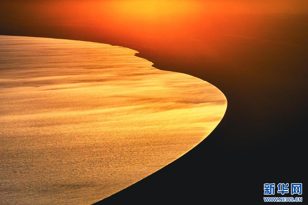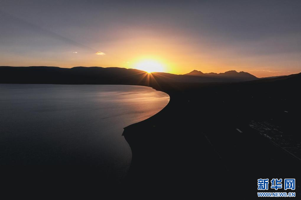 圖為夕陽下的當(dāng)惹雍錯( 7月5日攝,無人機(jī)照片)。新華網(wǎng)發(fā) 車宇軒 攝