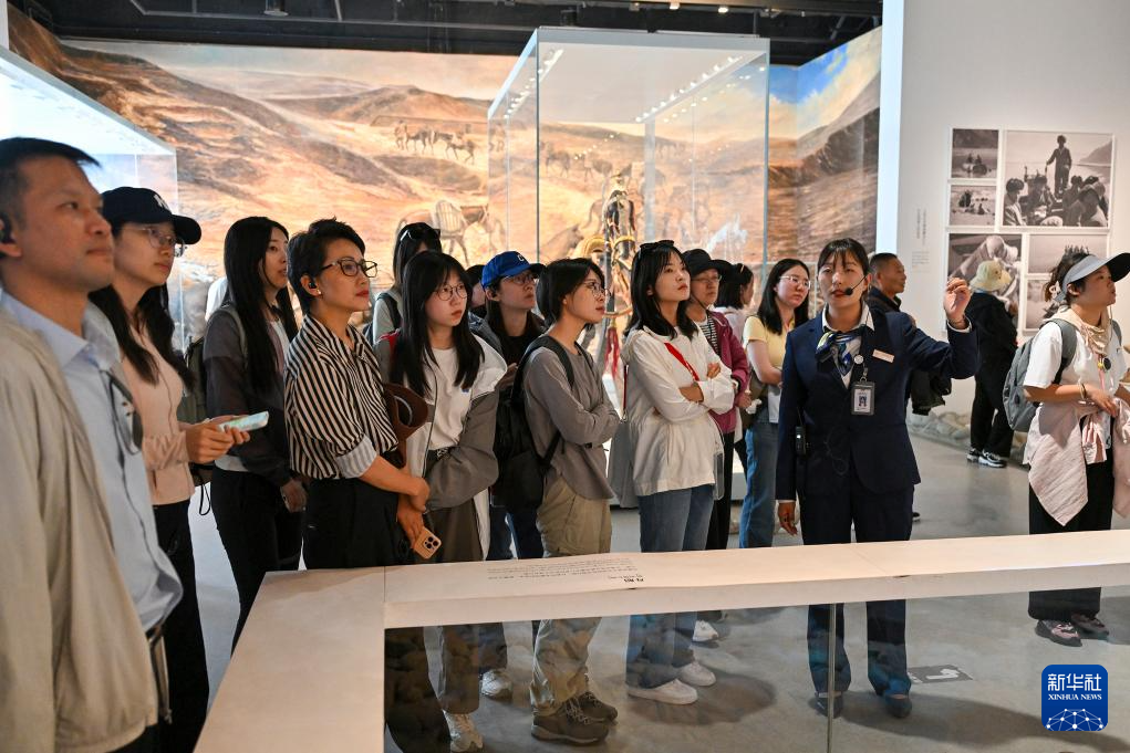 7月15日,集中采訪活動組織媒體記者參觀西藏博物館。新華社記者 李鑫 攝
