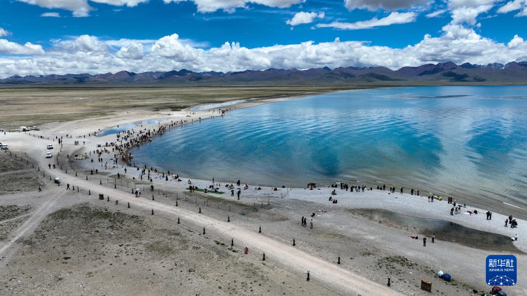 7月16日,在西藏拉薩市當(dāng)雄縣納木錯扎西島景區(qū),來自世界各地的游客享受著夏日納木錯清爽的風(fēng)。納木錯湖面海拔4718米,是世界上面積超過1000平方公里的湖泊中海拔最高的湖泊。2024年,納木錯扎西島景區(qū)接待游客約40萬人次。 ??