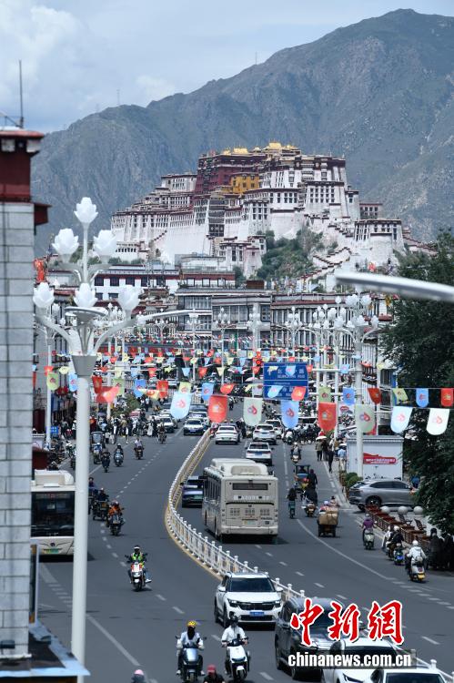 8月7日,隨著西藏自治區(qū)成立60周年大慶臨近,拉薩街頭處處洋溢著喜慶氛圍。市區(qū)主干道的路燈桿上,嶄新的國旗與彩旗有序懸掛,鮮艷奪目。人行天橋完成升級(jí)改造,裝飾板上國旗、石榴籽、牡丹花、浪潮、山川、連心結(jié)、雪山與哈達(dá)等元素相互交融,別具特色。工作人員正緊鑼密鼓地布置花壇,五彩花卉將為城市增添斑斕色彩。此外,各大廣場、公園也在裝點(diǎn),準(zhǔn)備迎接八方來客。拉薩正以最美姿態(tài),迎接這一重要時(shí)刻。圖為市區(qū)主干道上懸掛的彩旗。中新社記者 貢嘎來松 攝