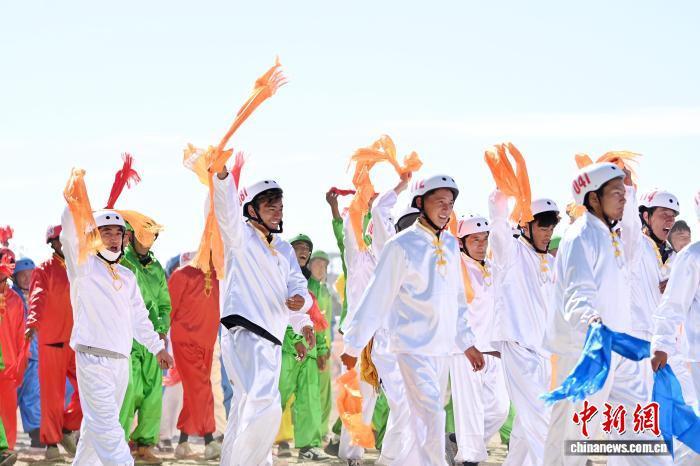 圖為開幕式現(xiàn)場賽馬選手入場。中新社記者 九美旦增 攝